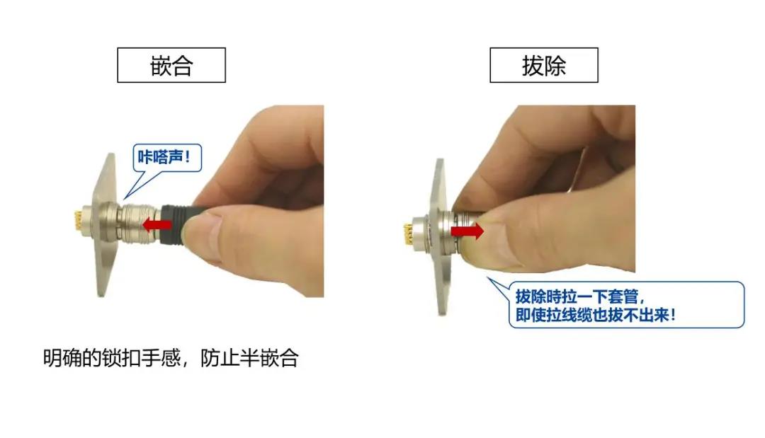 特點 1 超小級高密度圓形連接器 2 具有良好操作性的推拉鎖 3 EMI對策設計 4 支持Cat.5e(1Gbps)高速以太網※ 5 豐富的選型 ※傳輸性能可根據線纜?引腳尺寸?結線方法而改變, 線束后確認實力。 超小級